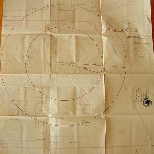 Plan d'agrandissement d'un gazomètre, 1934. AD Morbihan 5M229.Immatriculation