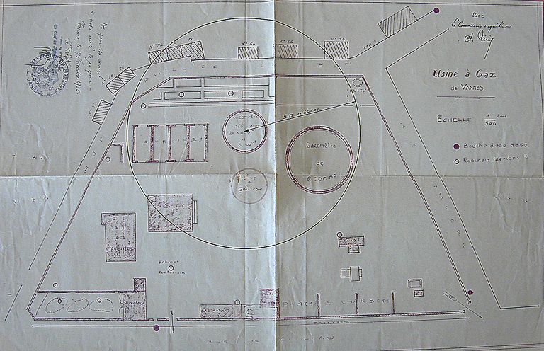Plan au sol de l'usine à gaz, 1935. AD Morbihan 5M229.Immatriculation