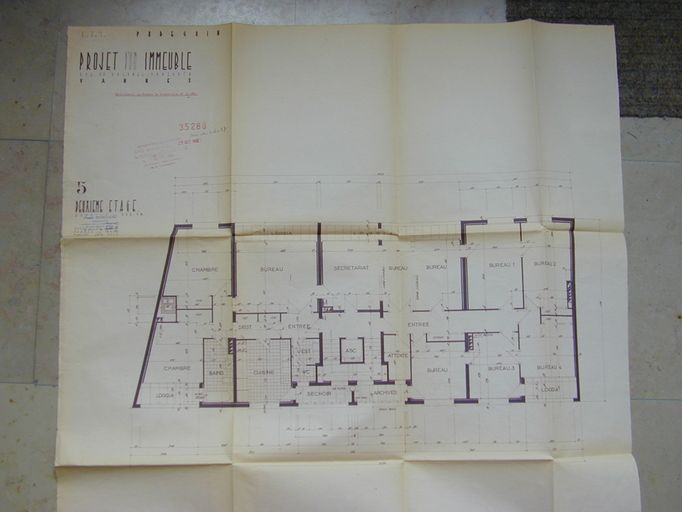 Plan du second étage par Guillou, 1962. AM Vannes 1G59.Immatriculation
