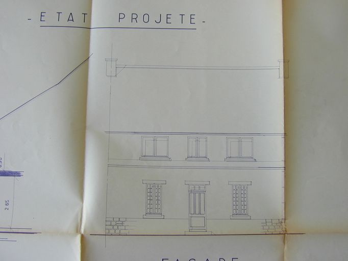 Elévation de la façade transformée de la propriété Launay n°33, 1968. AM Vannes 1G59.Immatriculation