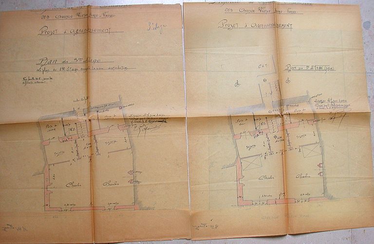 Plan d'agrandissement du n°5, plan des étages, par Edmond Gemain, 5 déc. 1912. AM Vannes 5 I 162.Immatriculation