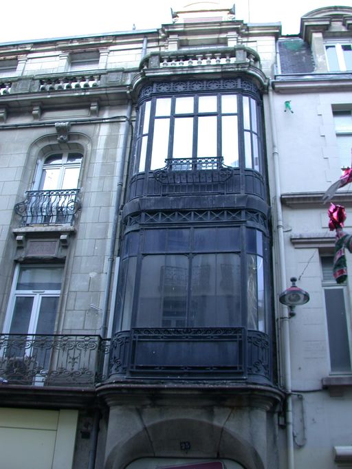 Détail de l'oriel sur deux étages.Immatriculation