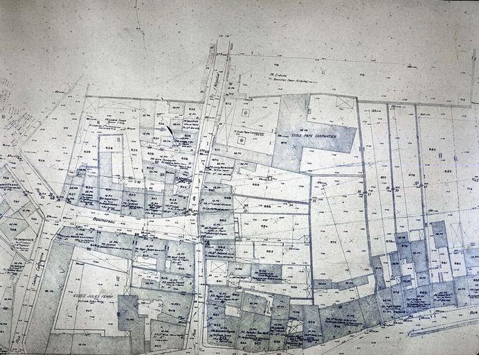 Plan parcellaire du tracé du boulevard de la Paix dans le quartier Boismoreau-Saint-Patern, sans date. AD Morbihan 1F426.Immatriculation