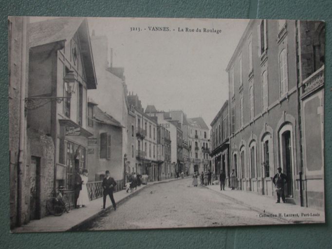 Partie est de la rue du Roulage, vue prise de l'est. Carte postale ancienne, vers 1910. (AM Vannes)Immatriculation