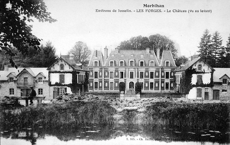 Morbihan. Environs de Josselin. - LES FORGES. - Le Château (vu au levant). Carte postale, Ch. Bailly, phot., Ploërmel : Vve Chamarre, édit., [1er quart 20e siècle].