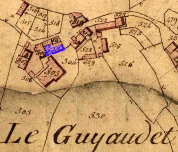 Extrait des plans cadastraux parcellaires de 1826 (AD 22).Immatriculation