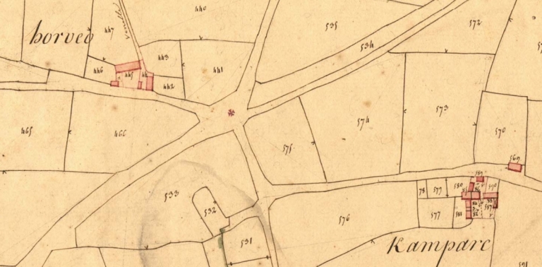 Extrait des plans cadastraux parcellaires de 1826 (AD 22).Immatriculation