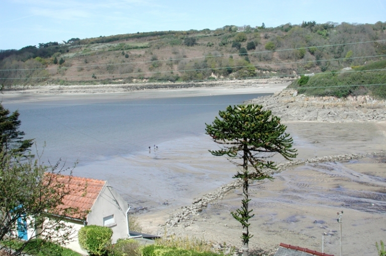 L'anse de la Vierge et le mur de retenue d'eau vue de la falaise de PloumilliauImmatriculation