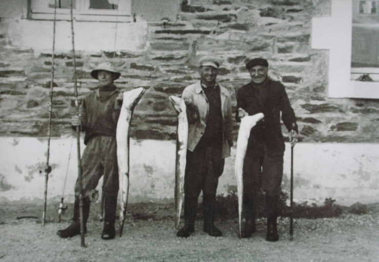 Lojou, Cadran et Gabreau avec leurs pêches de congres devant le Café-Hôtel de la BaieImmatriculation