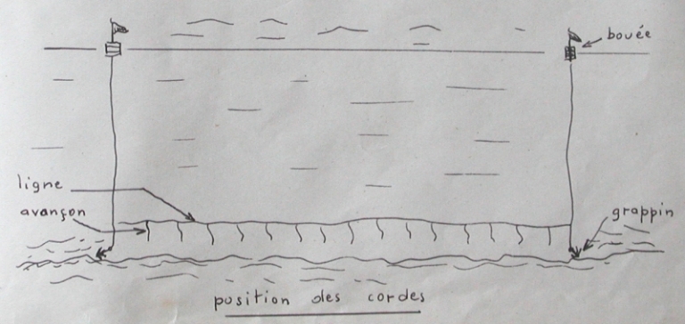 La pêche aux cordes : pose des cordes (Yves Audern)Immatriculation
