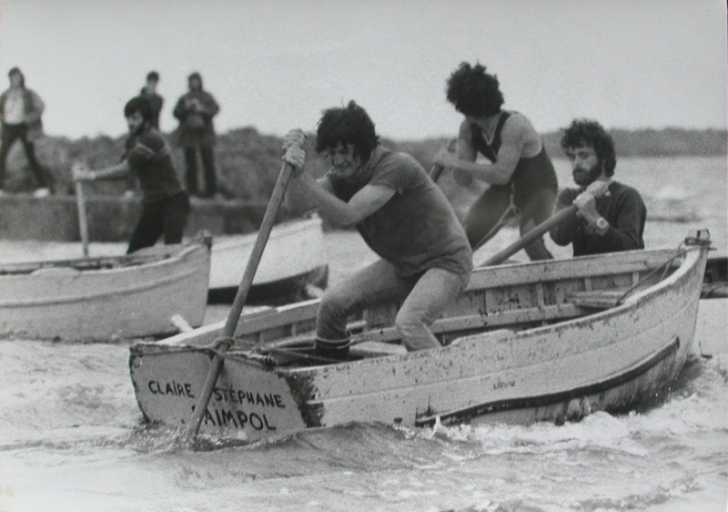 Concours de godille dans les années 1970 à bord de canots sardiniers : remarquer la solidité de la charpenteImmatriculation
