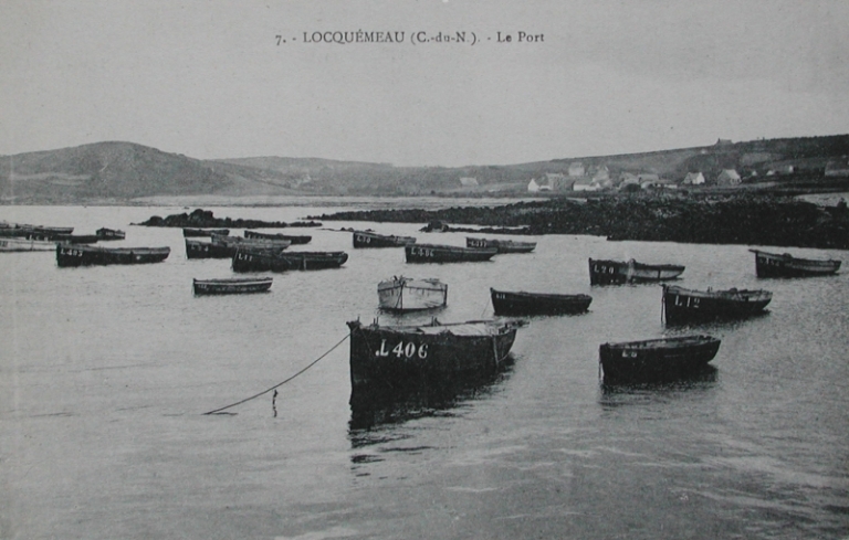 La flottille dans le port de Locquémeau au repos : L60 St-Yves, L483 Normandie, L24 Etoile, L11 Marie, L30 Maria, L486 Notre-Dame-de-Lourdes, L503 Rosalia, L454 MariaImmatriculation