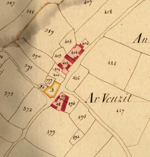 Extrait des plans cadastraux parcellaires de 1816 (AD 22).Immatriculation