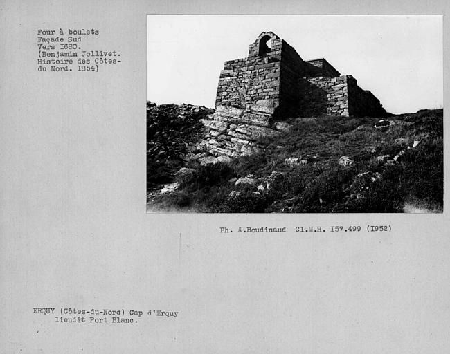 Vue du four à boulets d'Erquy : façade Sud, 1952Immatriculation