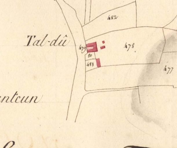Extrait des plans cadastraux parcellaires de 1813 (AD 22).Immatriculation