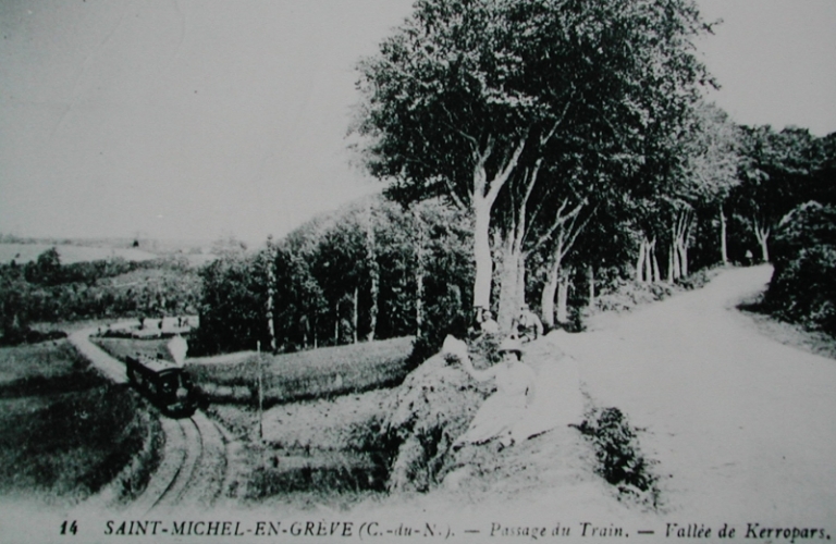 Ancienne voie ferrée d'intérêt local Lannion-Plestin-les-Grèves-Finistère, deuxième réseau, route de Bellevue ; route des Moulins (Saint-Michel-en-Grève),