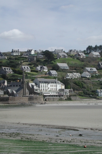 Vue de la mer : le bourg de Saint-Michel, l'église et les coteaux urbanisésImmatriculation