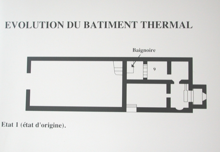 les différents aménagements et fonctions du bâtiment thermal : état d'origine avec une première baignoireImmatriculation