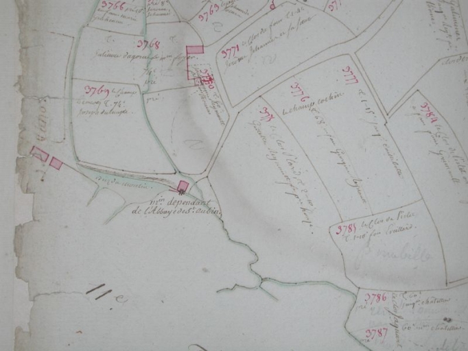 Extrait du plan-terrier du duché de Penthièvre, 1785 : Moulin dépendant de l'abbbaye de Saint-Aubin (AD 22)Immatriculation
