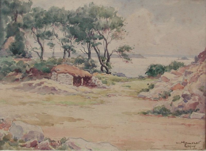 Aquarelle de Léon Hamonet : Cabanes des carriers d'ErquyImmatriculation