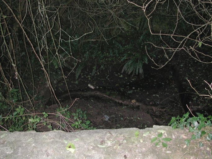 Le lavoir envahi par la végétation depuis le mur de soutènementImmatriculation