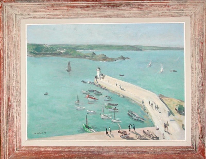 Huile sur toile : La digue du port et le phare (André Gagey)Immatriculation