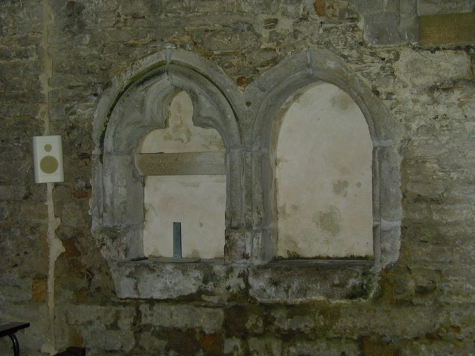 Nef, mur sud, niches et porte d'accès au porche nordImmatriculation