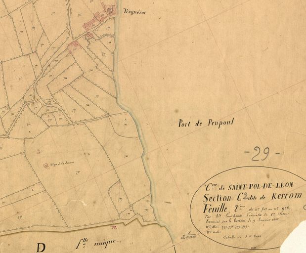 Plan de situation du corps de garde du champ de la Rive devenu vigie de la douane au cours du 19e siècle, extrait du cadastre ancien, 1848, Archives départementales du FinistèreImmatriculation