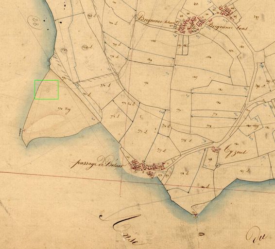 Plan de situation du corps de garde du Dourduff devenu vigie de la douane au cours du 19e siècle, extrait du cadastre ancien, 1826, Archives départementales du FinistèreImmatriculation