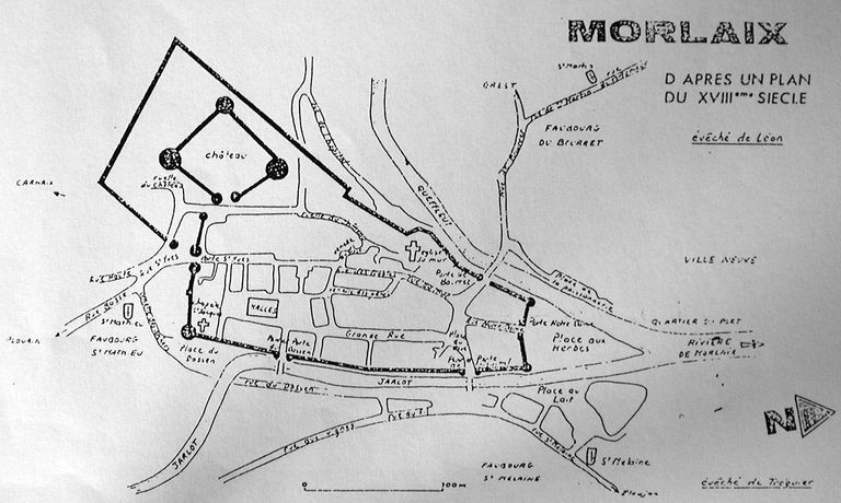 Plan de la ville de Morlaix au 18e siècle d'après Jean-Pierre Leguay (Le Léon, ses villes et Morlaix au Moyen-Age, 1978)Immatriculation