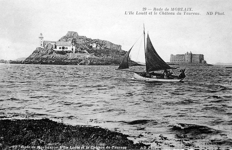 La baie de Morlaix : vue générale de l'île Louët et du château du Taureau, carte postale ancienne, Bibliothèque Municipale de MorlaixImmatriculation