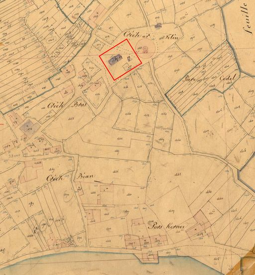 Plan de situation du corps de garde de Créac'h Vilin dit corps de garde du Centre qui se trouvait à l'emplacement de l'actuel sémaphore, extrait du cadastre ancien, vers 1846, Archives départementales du FinistèreImmatriculation