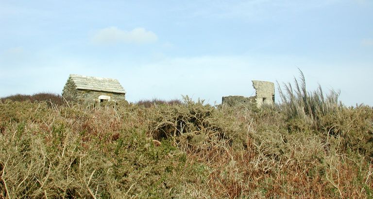 Vue générale du corps de garde et du moulin de Ru Vras depuis le chemin côtierImmatriculation