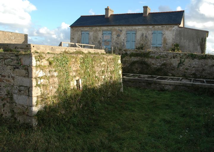 Vue du réduit (élévation Ouest) et du sémaphore (arrière-plan) de la pointe de Créac'h MeurImmatriculation