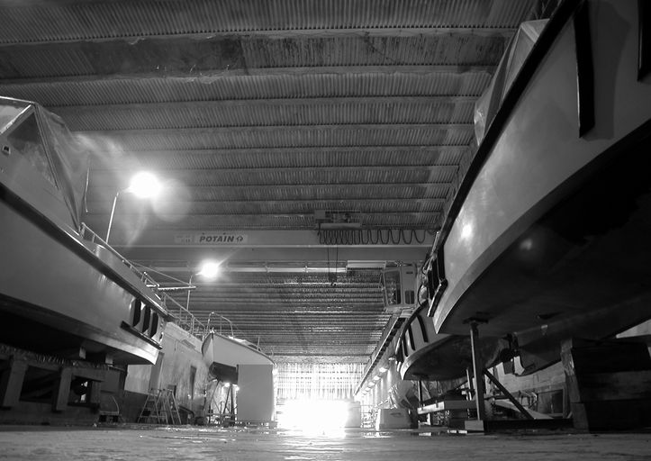 Vue intérieure de la base de sous-marins : première alvéole servant au stockage de bateaux (2004)Immatriculation