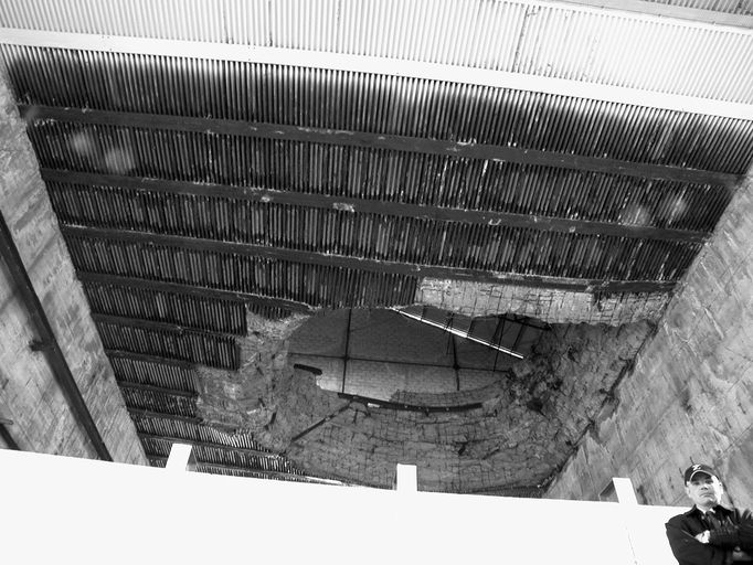 Vue intérieure de la base de sous-marins : cratère de bombe Tallboy (2004)Immatriculation