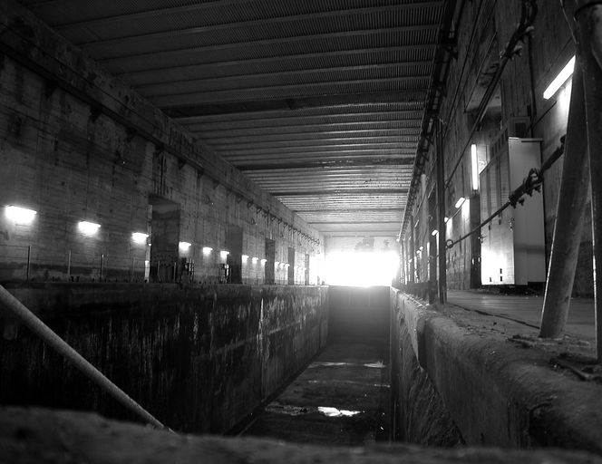 Vue intérieure de la base de sous-marins : alvéole à sec (2004)Immatriculation