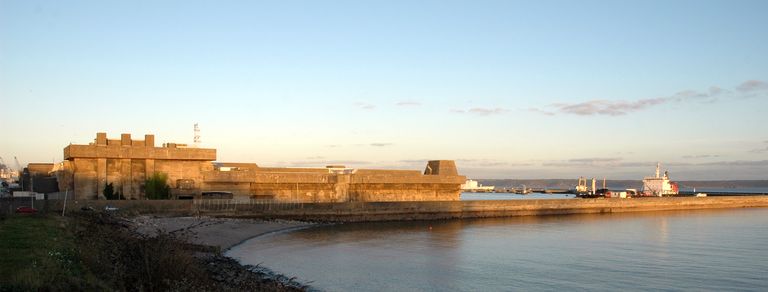 Vue générale de la base de sous-marins : front sud-ouestImmatriculation