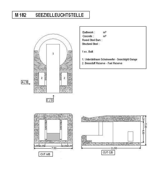 Plan du bunker de type M182 pour projecteur de 1,5 m (dessin Patrick Fleuridas, Belgian Bunkersite : http://www.bunkers.be)Immatriculation