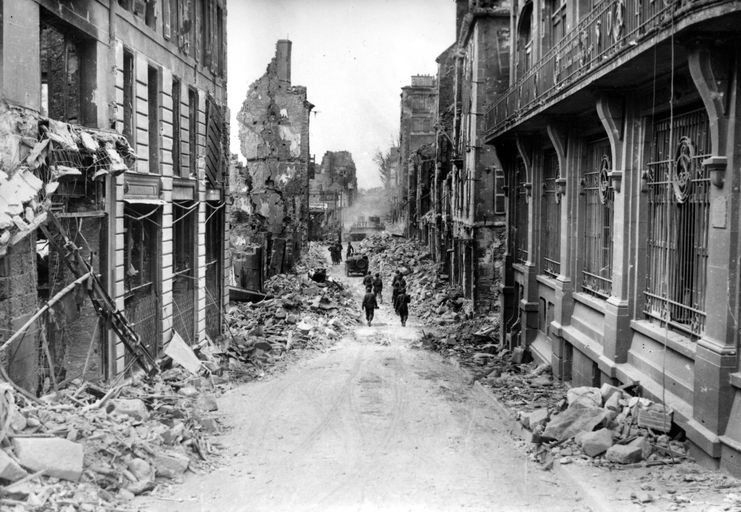 Vue générale de la rue de la Mairie, septembre 1944Immatriculation