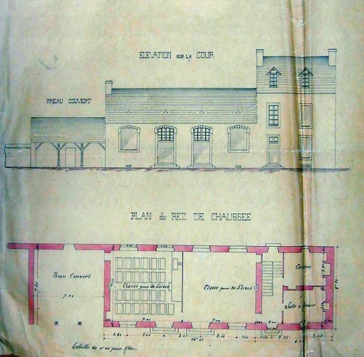 Elévation nord et plan au sol. Projet Joseph Bigot, 1892 ( A.E. Quimper, 8 L)Immatriculation