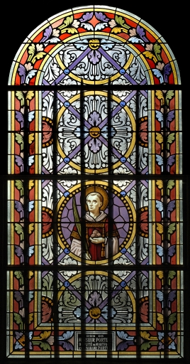 Verrière à personnages de la baie 6 : Saint Etienne et verrières décoratives des baies 2, 4 et 00,