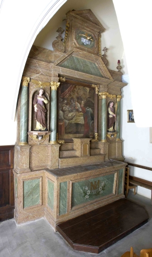Ensemble de l'autel de la Vierge : autel, tabernacle, 2 gradins d'autel, retable, degré d'autel,