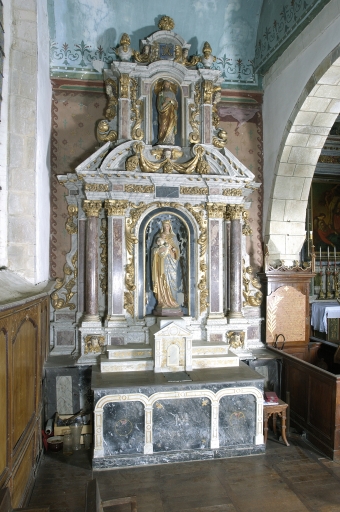 Ensemble de l'autel de la Vierge : autel, tabernacle, 2 gradins d'autel, retable,