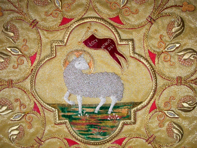 Voile huméral 1, décor : vue rapprochée de l'agneauImmatriculation