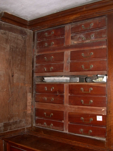 Meubles de sacristie : chasublier, 3 armoires, lambris de revêtement,