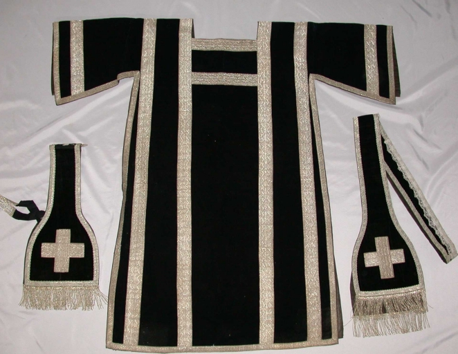 Paire 2 de dalmatiques avec leur manipule et leur étole,