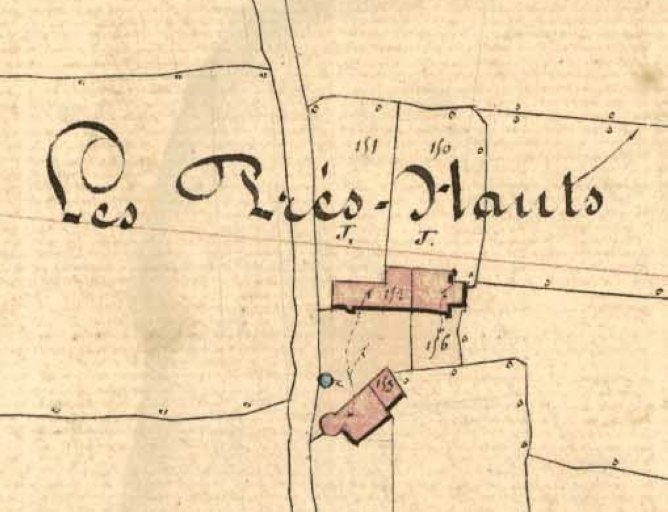 Alignement de deux fermes, les Prés Hauts (Brécé),