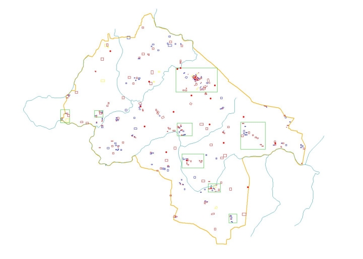 En bleu, les maisons et fermes simplement cartographiéesImmatriculation