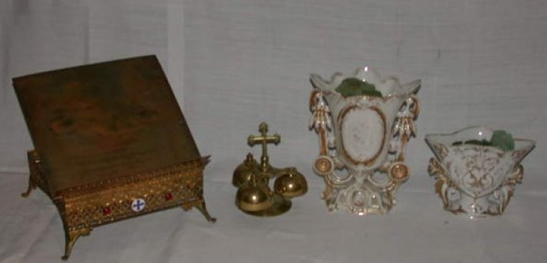 Pupitre d'autel, sonnette liturgique, vases à fleurs 1 et 2Immatriculation